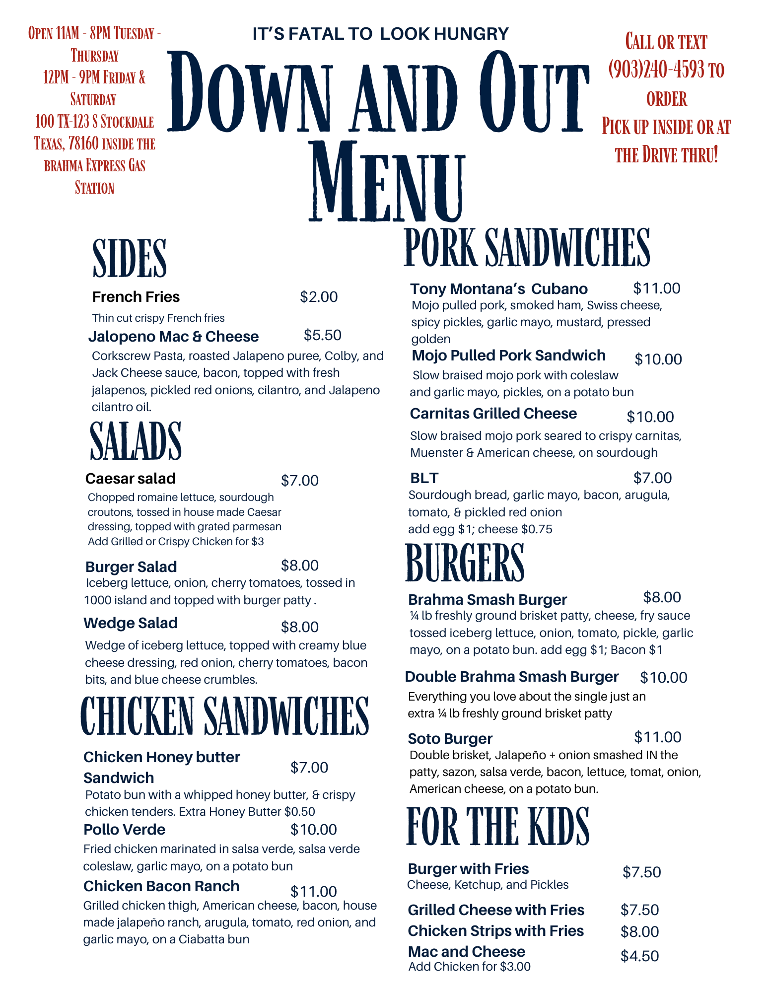 Mon: ClosedCopyright © 2026 Down and Out All Rights Reserved. Sitemap. Accessibility Statement